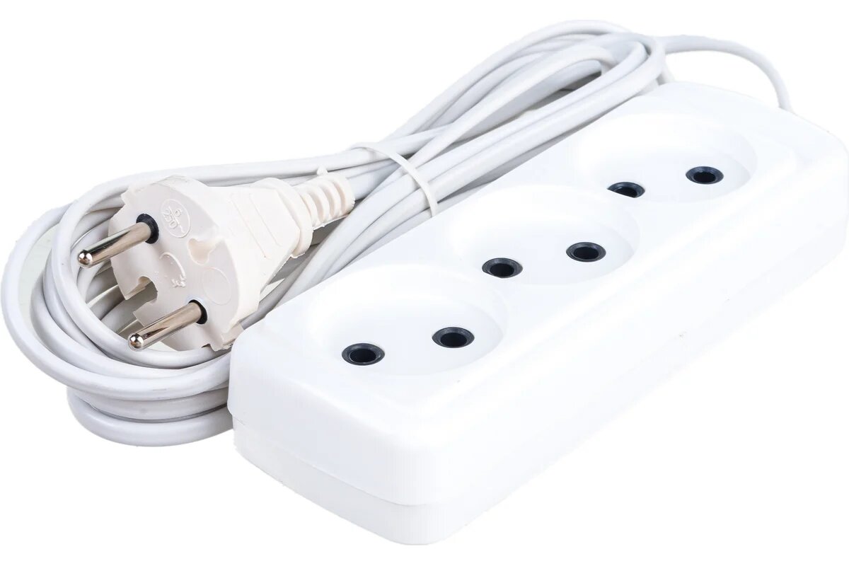 Удлинитель бытовой Volsten 12423 без заземления, 3 розетки, длина 5 м, ШВВП 2х0,75, белый, 6 А, 1300 Вт