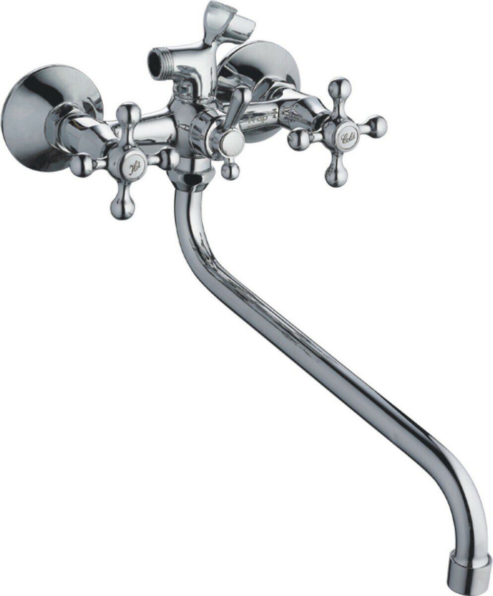 Haiba Смеситель для ванны (Lt) трубчатый поворот.излив-S 300мм,двухвент, шаровый.перек, хром, HB2208