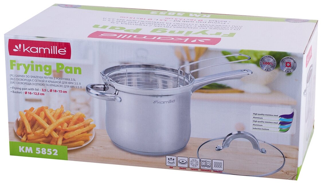 Кастрюля-фритюрница 3,5 л из нержавеющей стали Kamille KM-5852 информация: