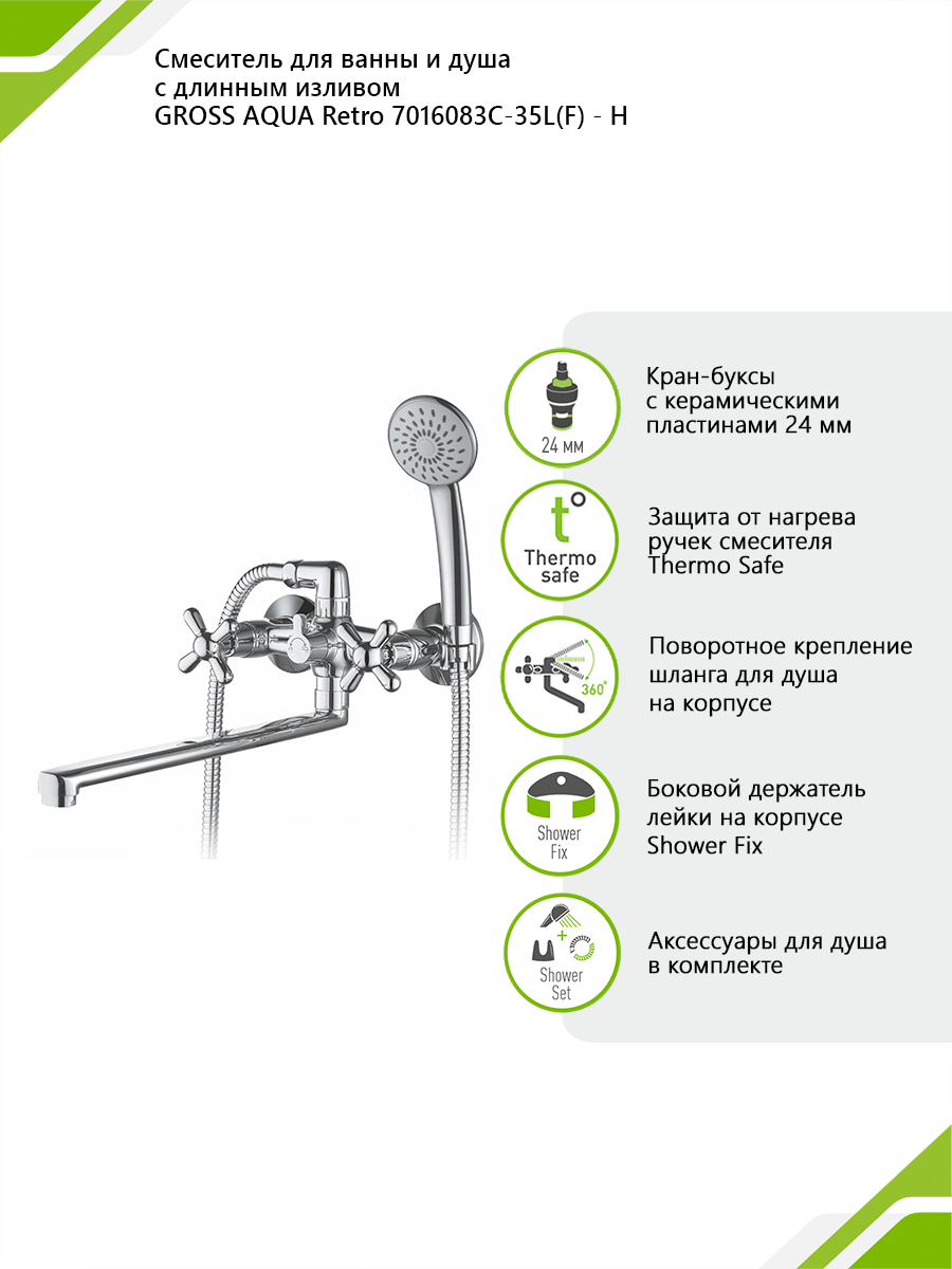 Отзывы на Смеситель для ванны и душа с длинным поворотным изливом Gross Aqua Retro, латунь, хром, 7016083С-35L(F)-H.