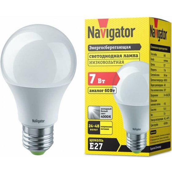 Отзывы на Лампа светодиодная LED 7вт 24/48в Е27 белый (61474 NLL-A60), NAVIGATOR 20640 (1 шт.)