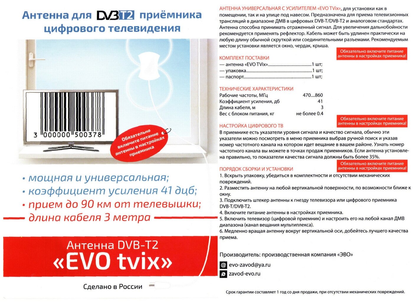 | Особенности | активная антенна, прием DVB-T/DVB-T2 |