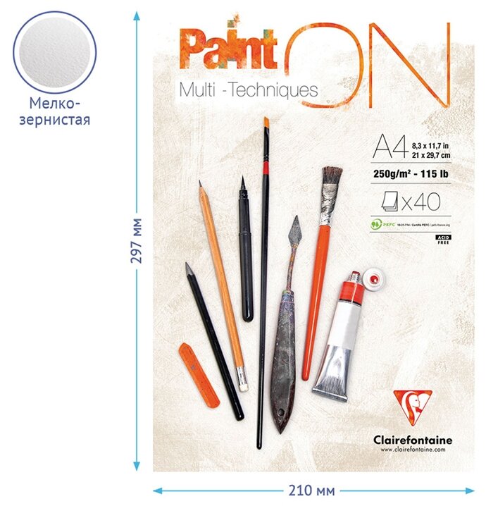Альбом 40 листов Paint'ON для смешанных техник, А4 (210х297 мм), 250 гр/м2, , склейка 1 сторона, артикул 96537 CF-96537 Альбом для смешанных техник 40 листов Paint'ON, А4 (210х297 мм), 250 гр/м2, , склейка 1 сторона информация: