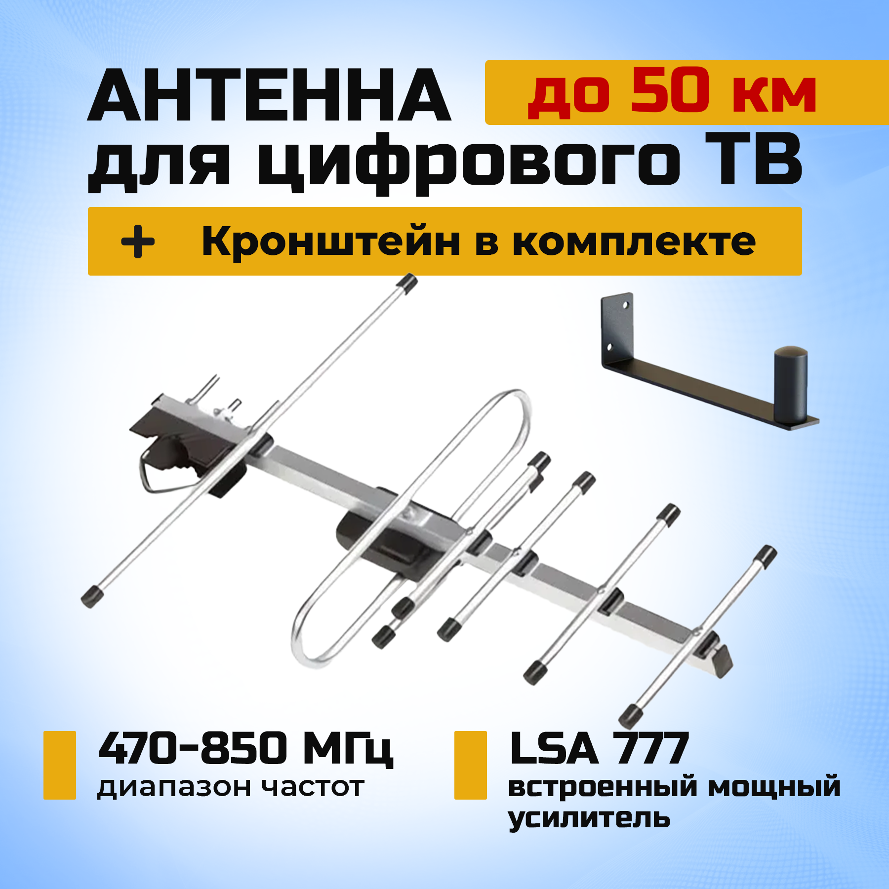Антенна для цифрового ТВ Locus Меридиан-07AF TURBO уличная DVB-T2, с балансным усилителем в комплекте со стальным кронштейном 0,2 метра информация: