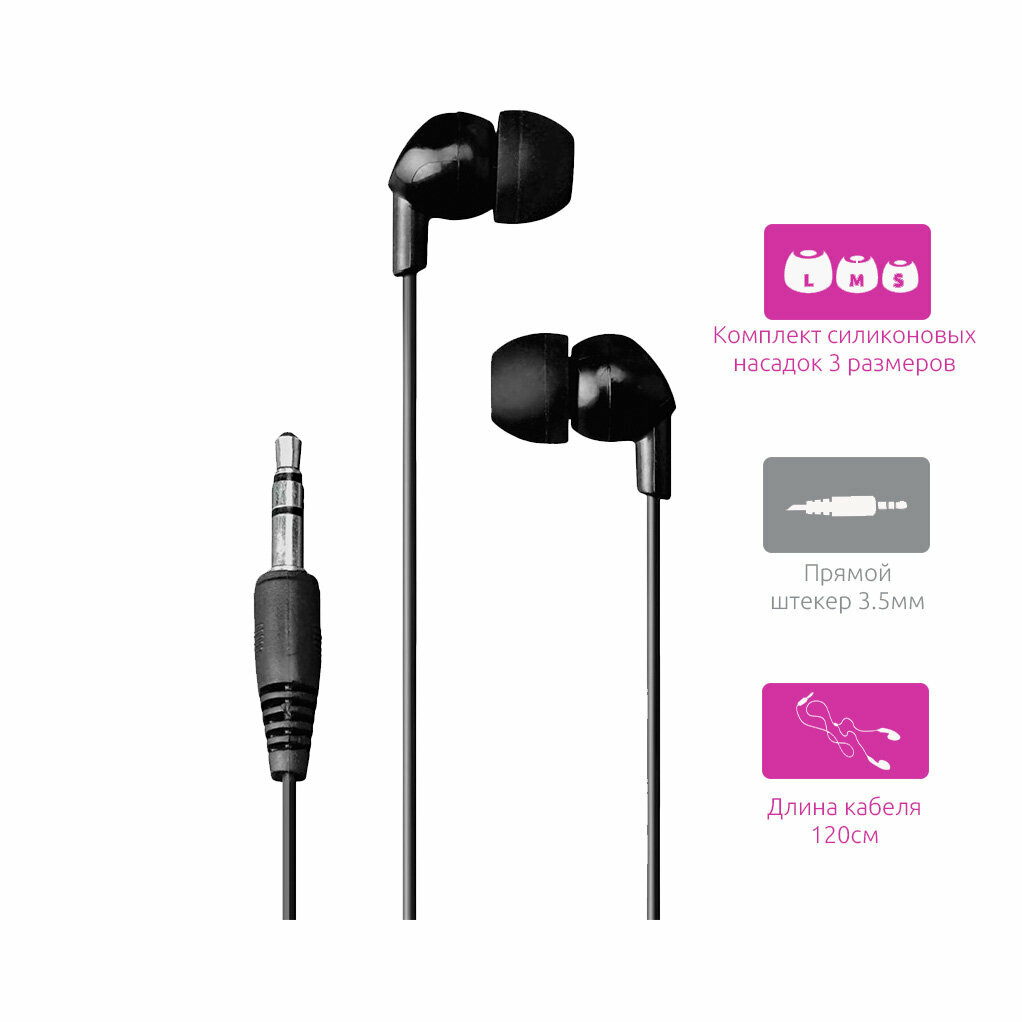 Наушники внутриканальные для телефона, черные, OLMIO информация: