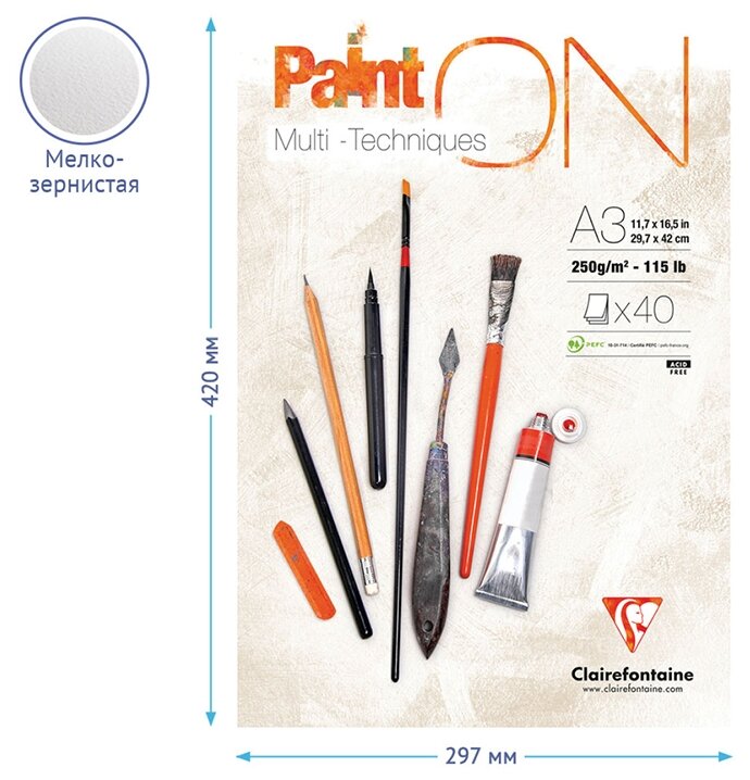 Альбом 40 листов Paint'ON для смешанных техник, А3 (297х420 мм), 250 гр/м2, , склейка 1 сторона, артикул 96536 CF-96536 Альбом для смешанных техник 40 листов Paint'ON, А3 (297х420 мм), 250 гр/м2, , склейка 1 сторона информация: