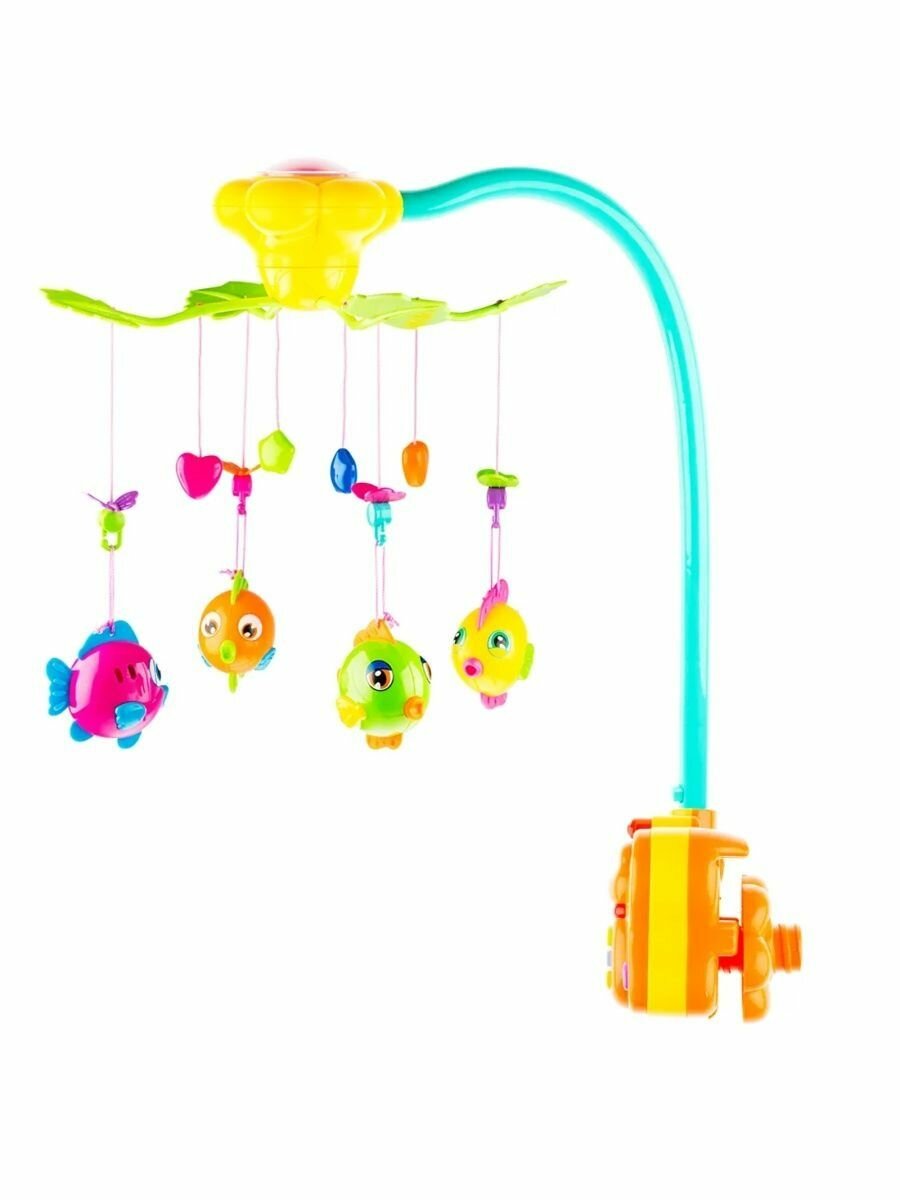 Мобиль с проектором для детей "Добрые сны" с погремушками в виде рыбок / Мобиль для новорожденных / Колыбельные мелодии / Тини / Лав / Love / Tiny