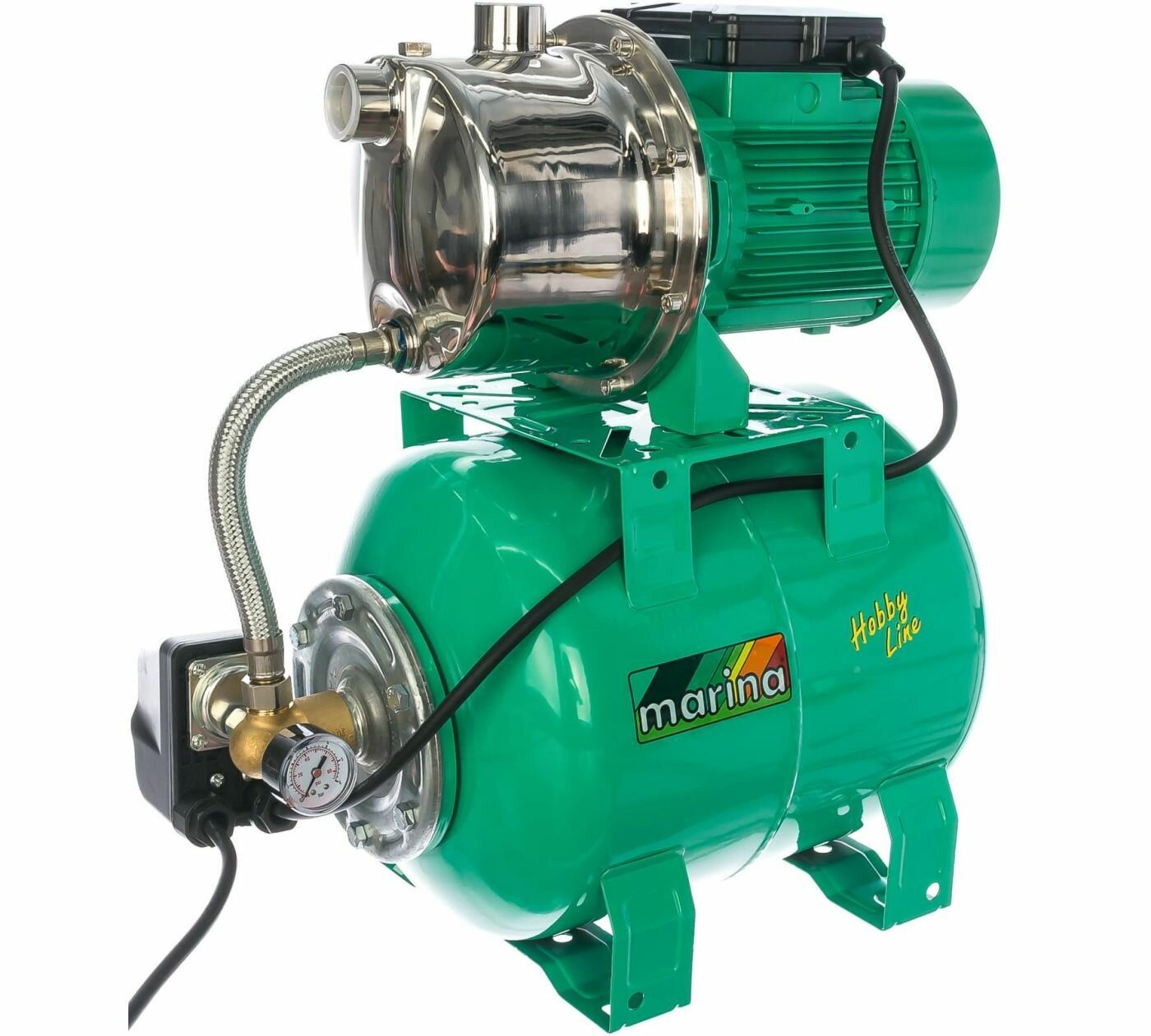 | Дополнительная информация | давление предварительной настройки 1,4-2,8 бар; класс защиты IP44; компоненты установки: мембранный бак, гибкий соединительный шланг, реле давления, электрический кабель с вилкой, манометр, бронзa фитинги; максимальная температура окружающей среды: 40 °C |