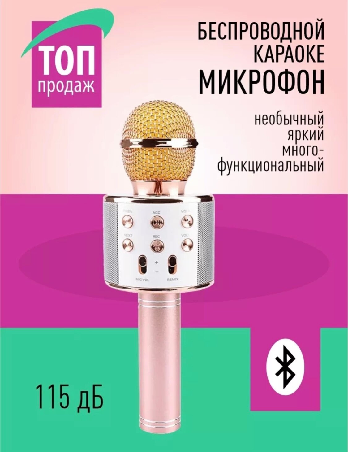 Отзывы на Микрофон для караоке,для вокала.С встроенной колонкой. 2 в1. Premium.(розовое золото)