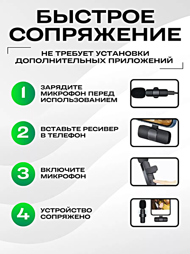 | Комплектация радиосистемы | Микрофон петличка-1шт., Ресивер с разъемом Type-C |