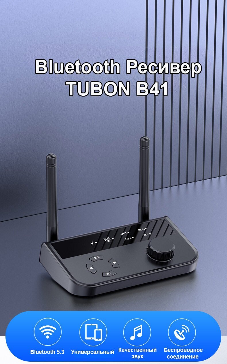 Адаптер Bluetooth Ресивер (приёмник аудио) AUX, Coaxial, Toslink B41 информация: