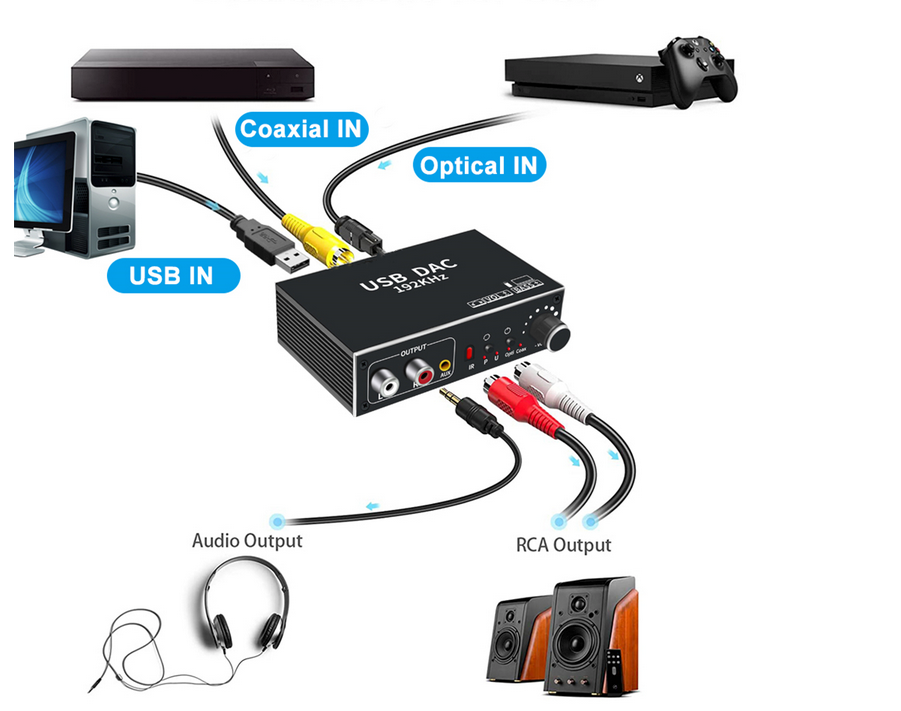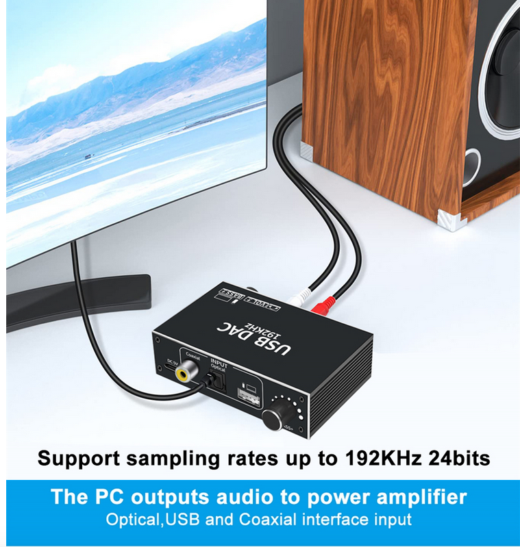 Отзывы на Цифро-аналоговый преобразователь декодер USB DAC 192kHz (S/PDIF, Coaxial, RCA, AUX, Vol, Bass)