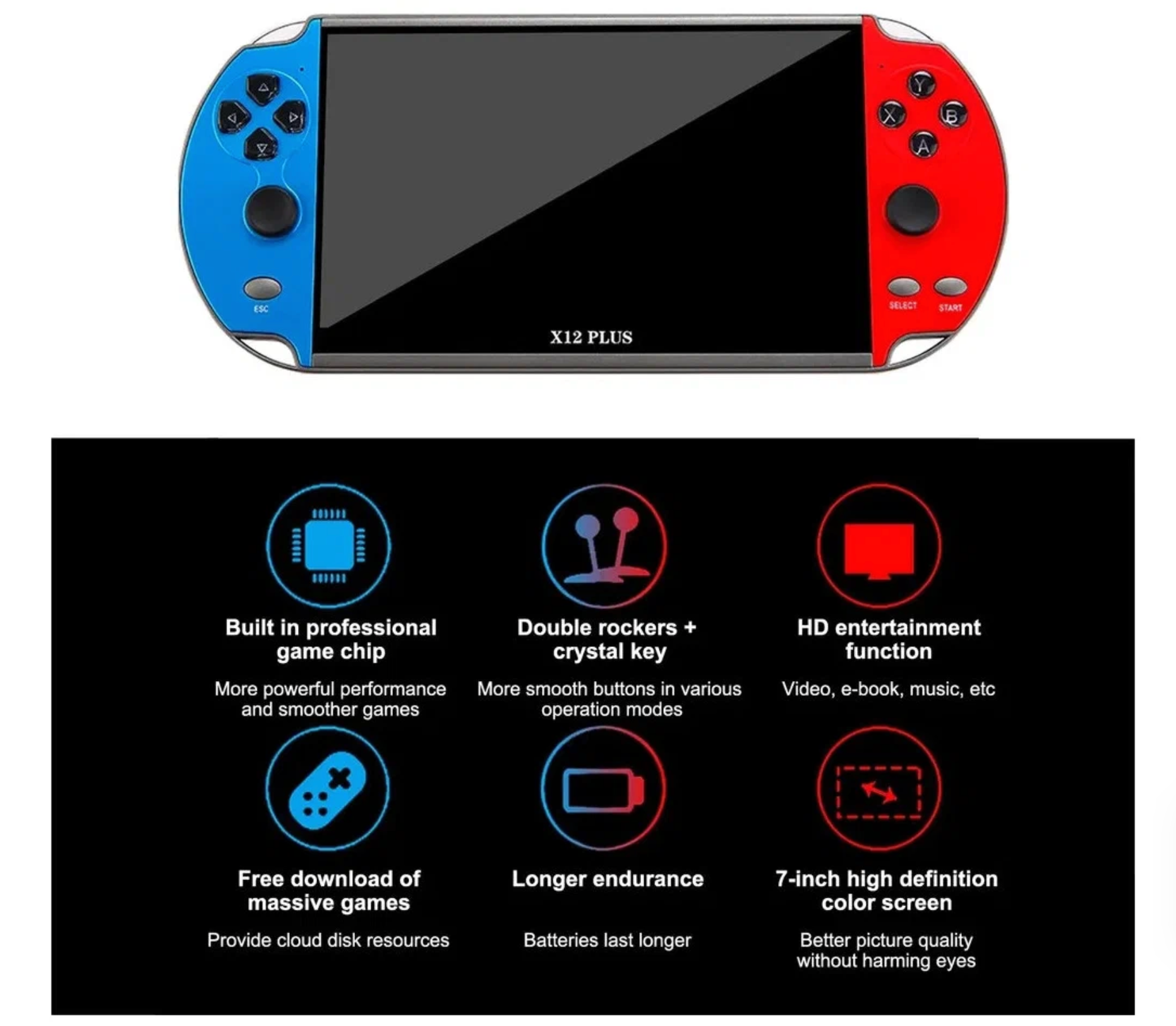 Портативная игровая консоль X7 Plus с 5.1 дюймовым экраном 1000+ встроенных ретро игр информация: