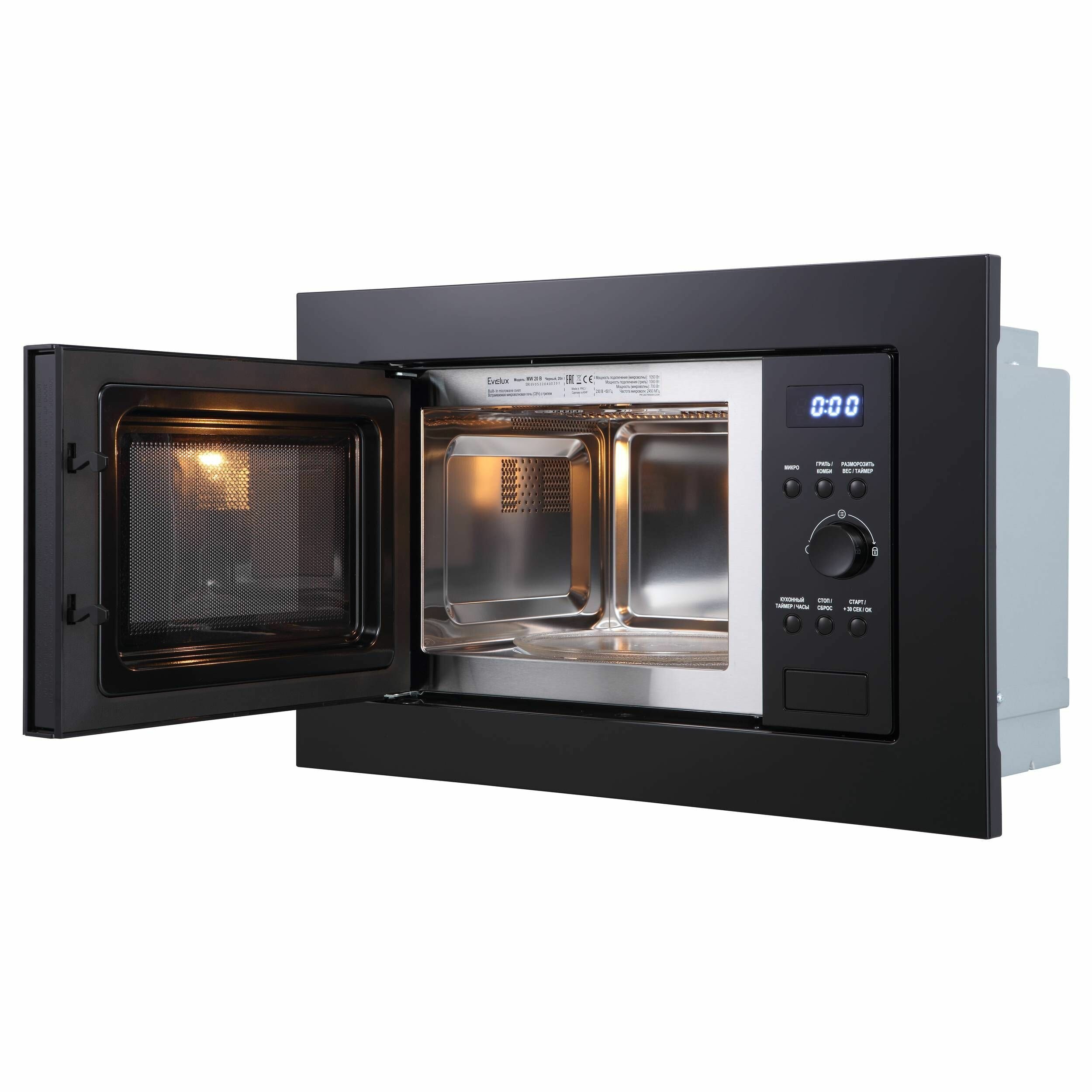 10 цен на Встраиваемая микроволновая печь Evelux MW 20 B, автопрограммы, комбинированный режим, гриль, объем 20 л, внутреннее покрытие из нержавеющей стали