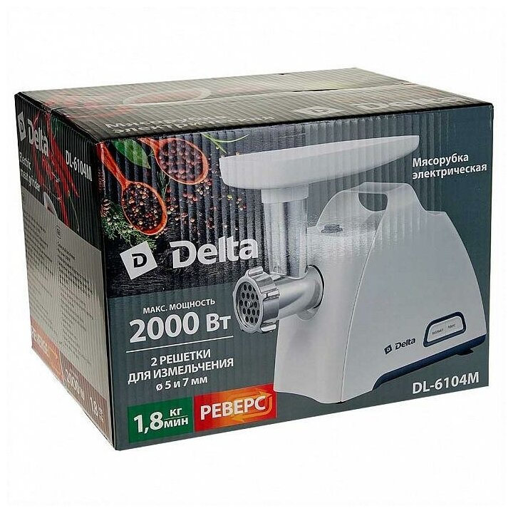 Мясорубка DELTA DL-6104M белый с серым (2000 Вт)