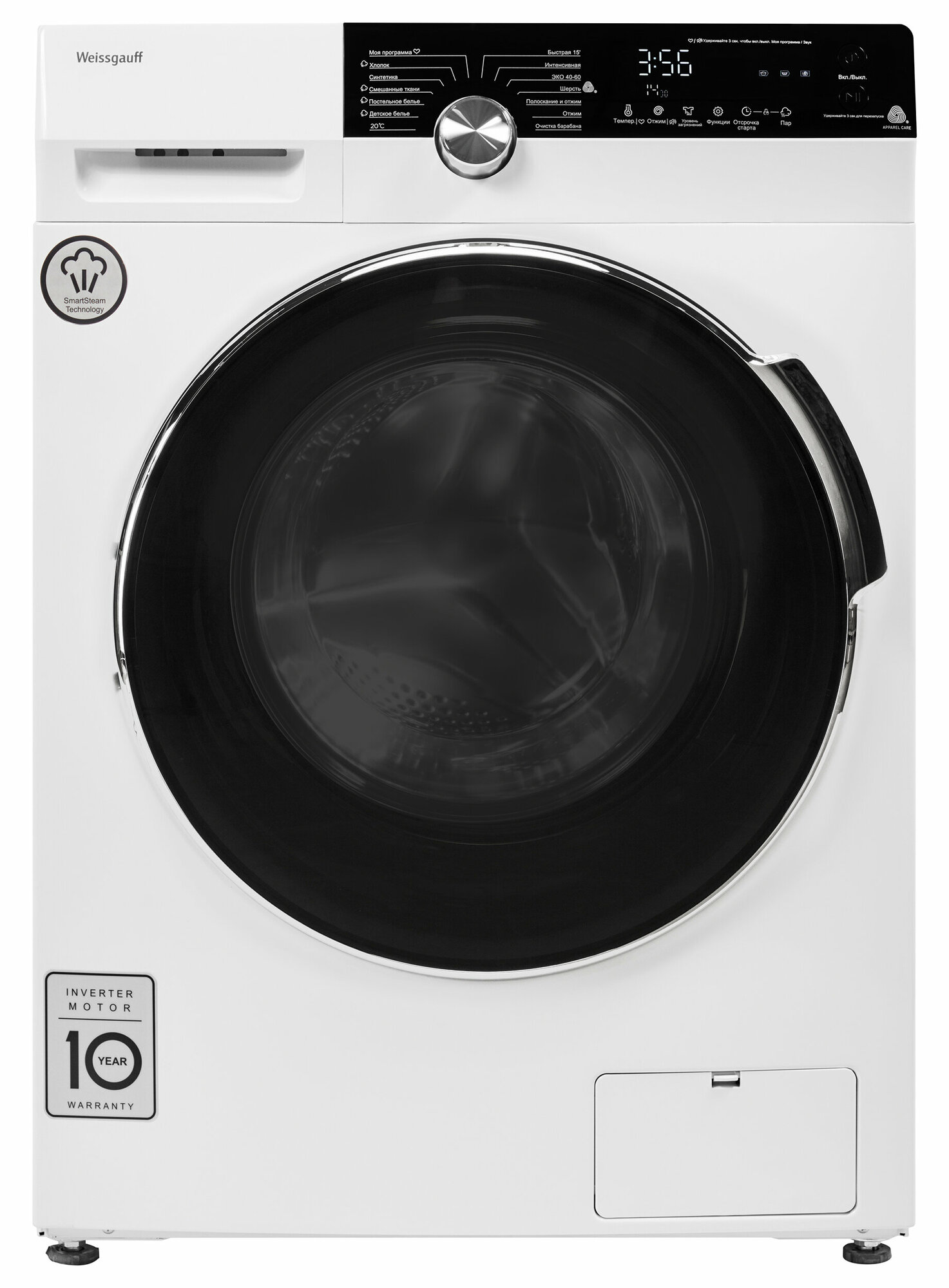 Стиральная машина WEISSGAUFF WM 59412 DC Inverter Steam, 12 кг, белая информация: