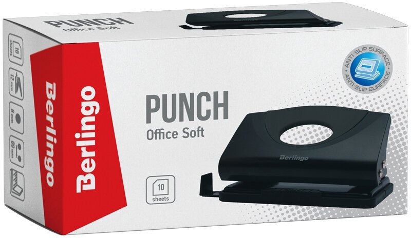 Дырокол Berlingo Office Soft, до 10 листов, линейка, черный (DDp_10161)