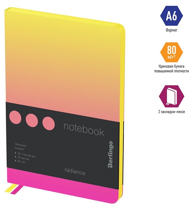 Записная книжка Berlingo А6, 80 листов, кожзам, "Radiance", черный срез, желтый-розовый, градиент (NB0_93601) информация: