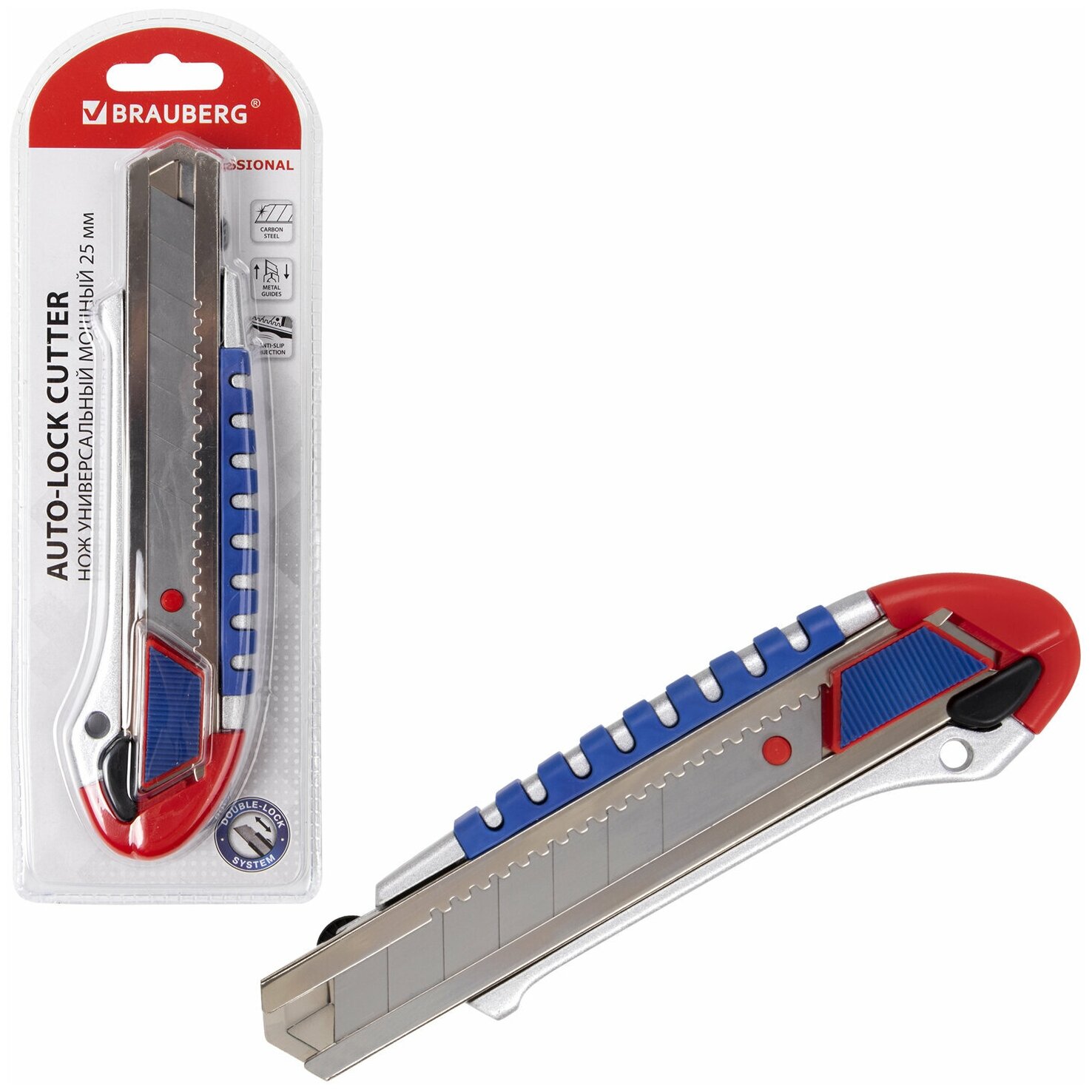 BRAUBERG Нож универсальный мощный ширина 25 мм Professional , металлический корпус, 237448