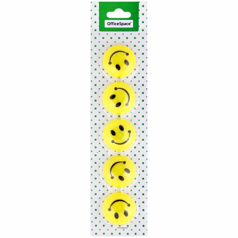 Магнит для досок OfficeSpace "Смайлик" 30мм, 5шт., европодвес (арт. 201274)
