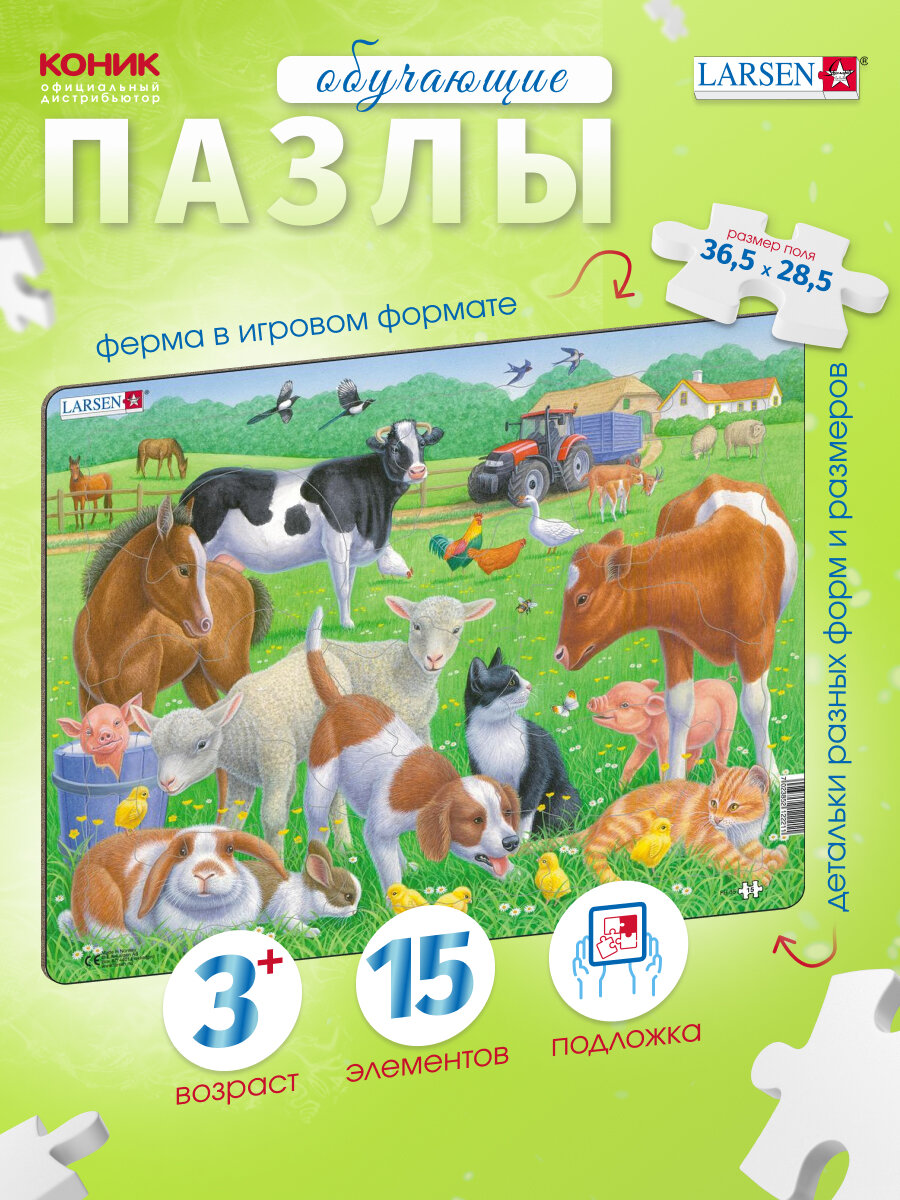 Пазлы для детей Larsen "Обитатели фермы", 15 элементов, FH35 информация: