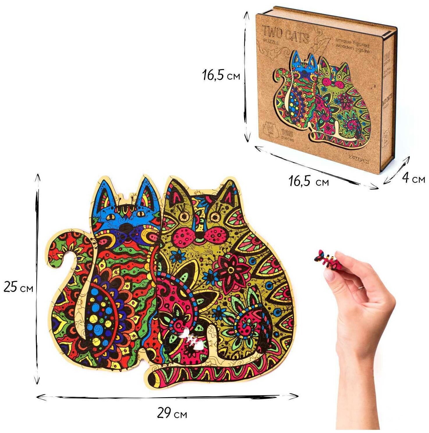 ZUFA Деревянный пазл с двухслойной крышкой «Два кота» M информация: