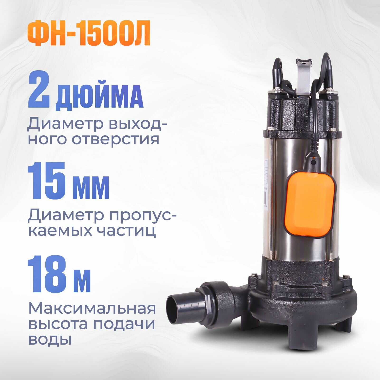 Вихрь Насосы Вихрь 68/5/5 Фекальный насос ФН-1500Л лезвие 1500 вт, высота подъема-18 м, max-24 м3/час, частицы-15 мм