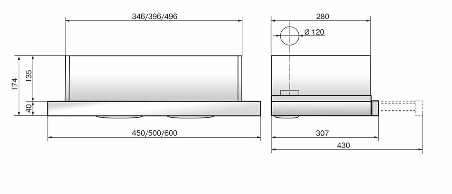 Вытяжка Elikor "Интегра" 50П-400-В2Л черный/нерж ,встраиваемая, выдвижная, 400м³/ч