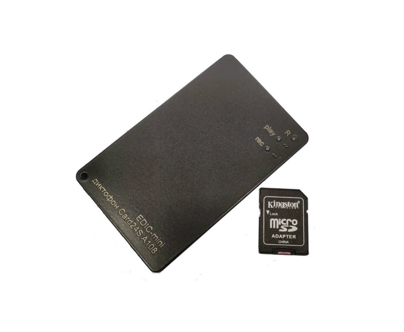 Диктофон для записи в карточке Эдик-mini CARD-24S mod: A-108 (O43592CI) + 2 подарка (Power Bank 10000 mAh + SD карта) - запись речи до 20 метров, авто информация: