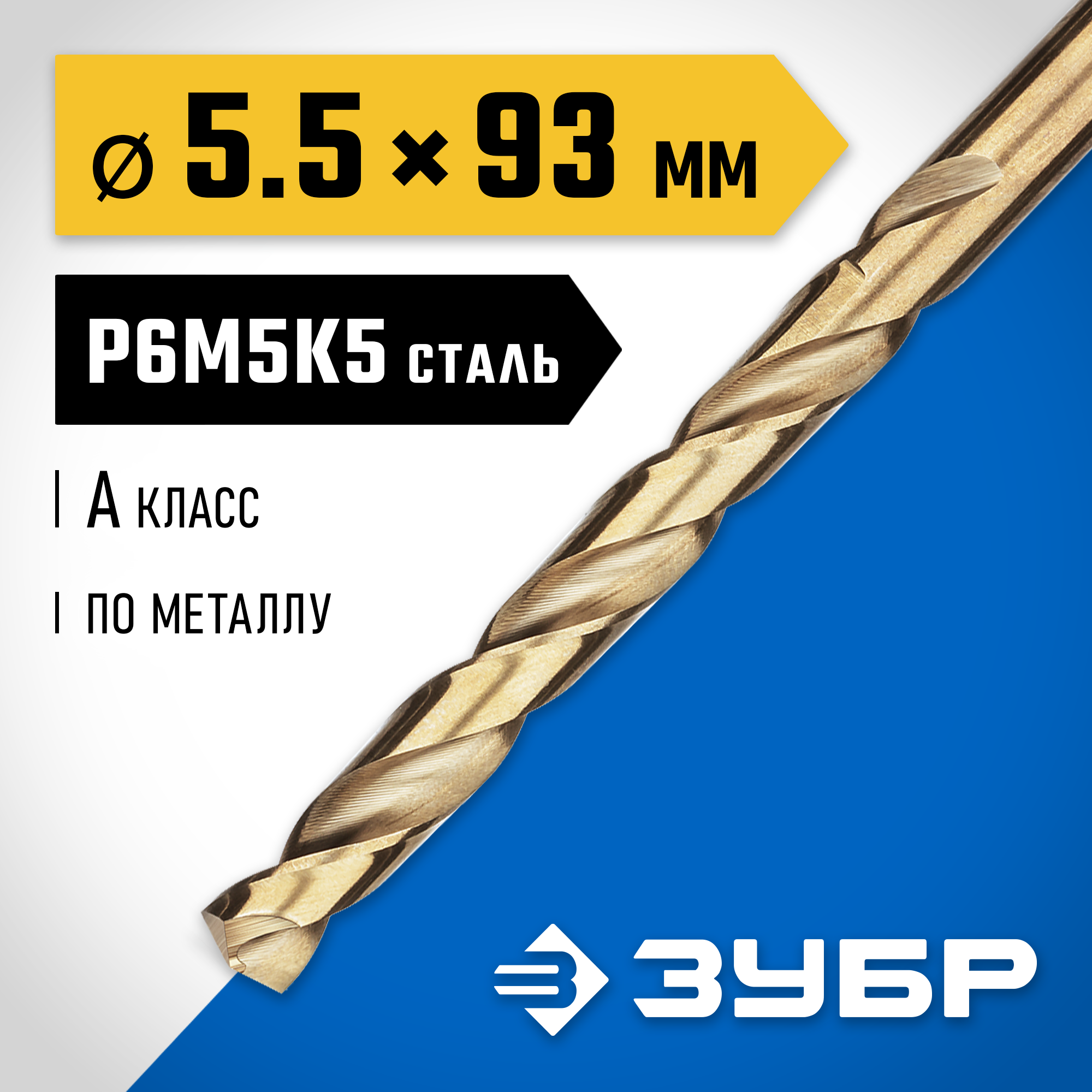 ЗУБР кобальт 5.5х93мм, Сверло по металлу, сталь Р6М5, класс А 29626-5.5