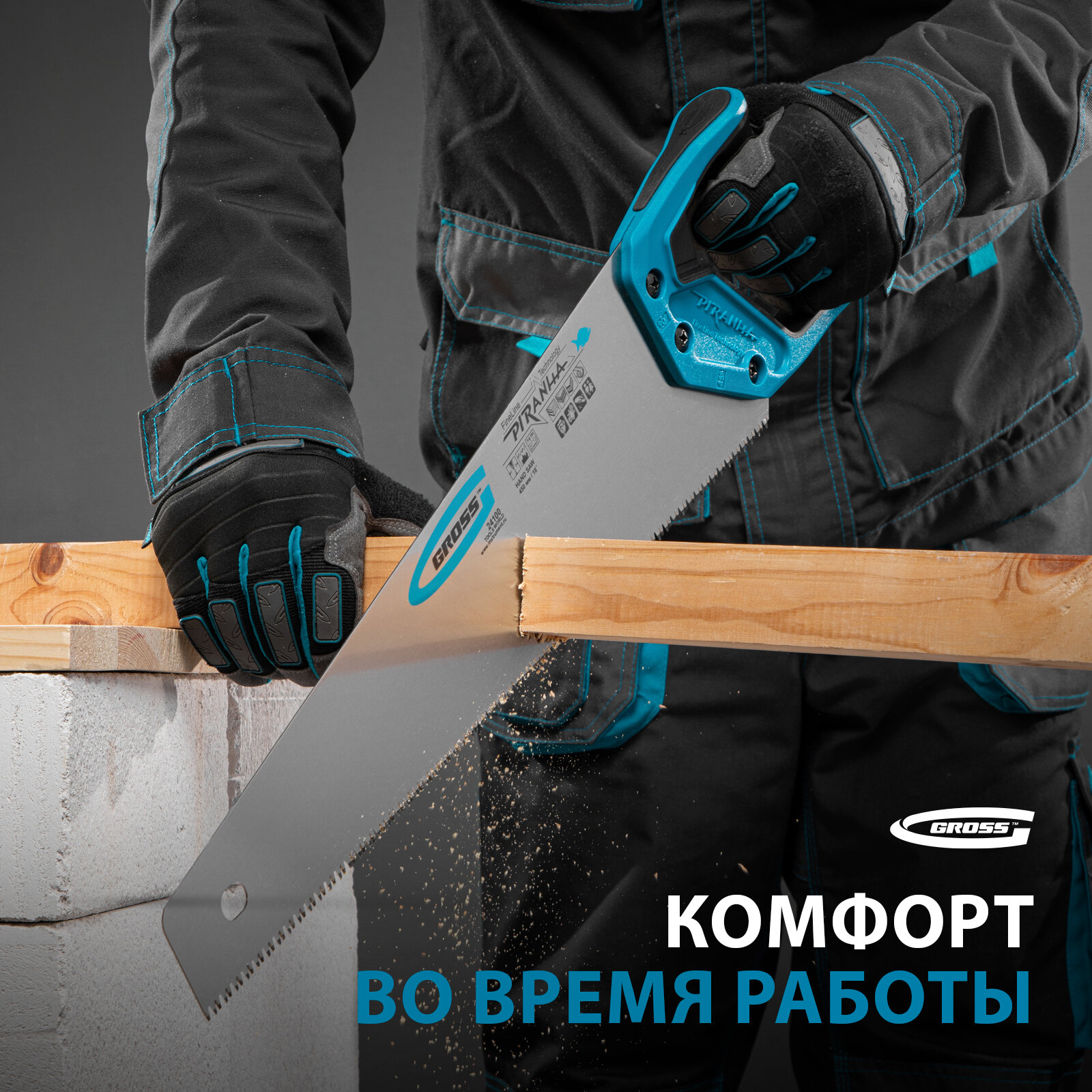 Отзывы на Ножовка по дереву "PIRANHA", 450 мм, 7-8 TPI, зуб - 3D, каленый зуб, 2-х комп. рук-ка Gross [24100]