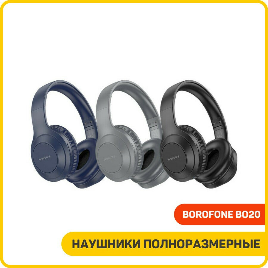 Bluetooth-наушники полноразмерные Borofone BO20, цвет серый, 1 шт