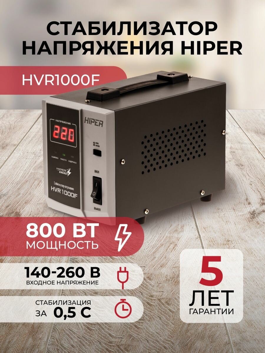 Стабилизатор напряжения Hiper Hvr1000f релейного типа, 140-260В, 800Вт, напольный Hvr1000f .