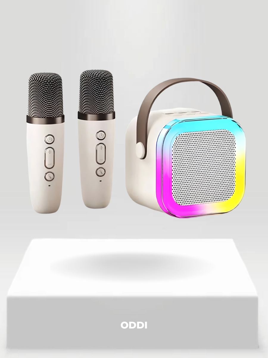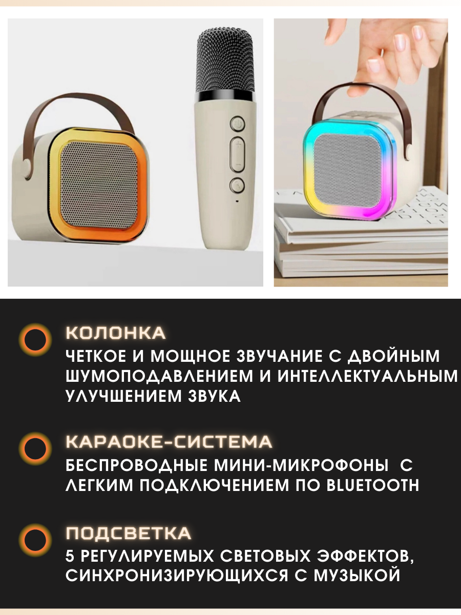 Портативная колонка караоке с 2 микрофонами и подсветкой информация: