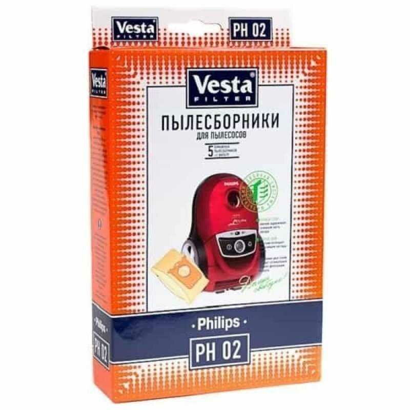 Vesta filter PH02 комплект мешков-пылесборников бумажных (5шт+1 фильтр) для пылесоса Philips