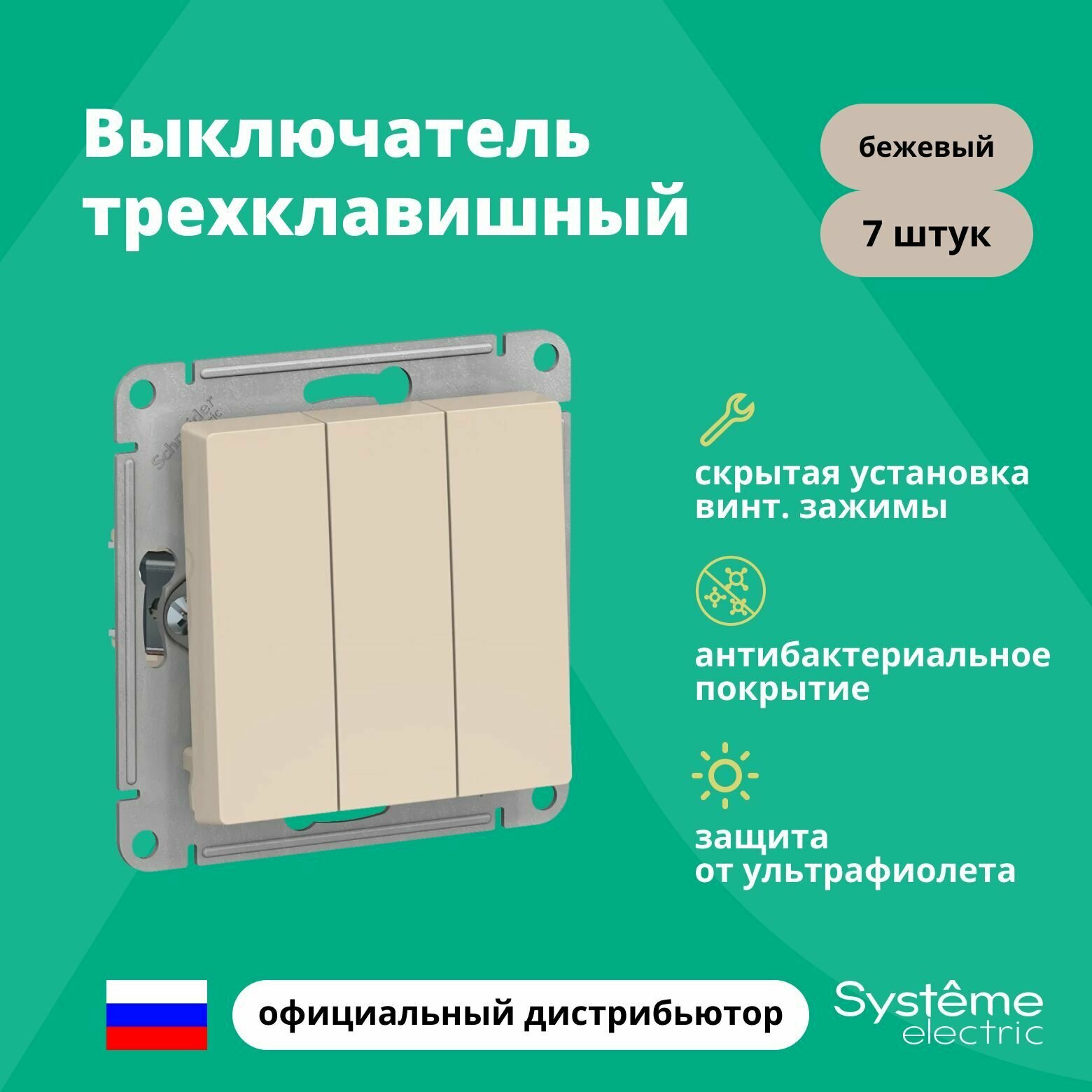 Выключатель трехклавишный Schneider Electric (Systeme Electric) Atlas Design механизм бежевый ATN000231 7шт информация: