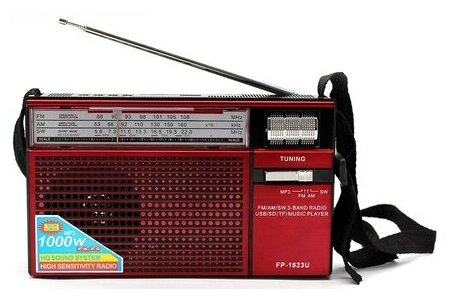 Fepe / FP-1823U красный Радиоприемник AM-FM-SW, питание от сети 220В - Радио c MP3 плеером USB