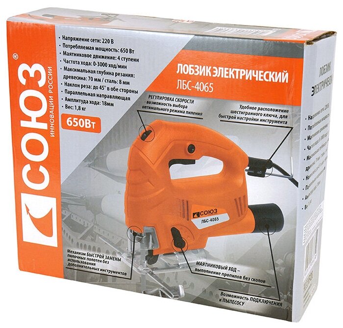 Лобзик Союз ЛБС-4065 650Вт 3000об/мин информация:
