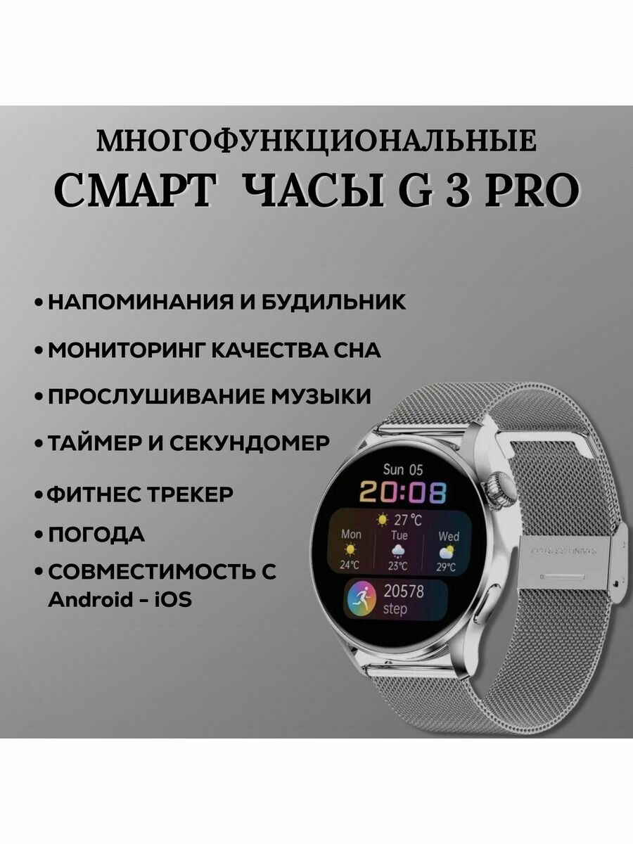 Умные часы женские Smart Watch 42MM, AMOLED, iOS, Android, Bluetooth звонки, Уведомления, Серебристый информация:
