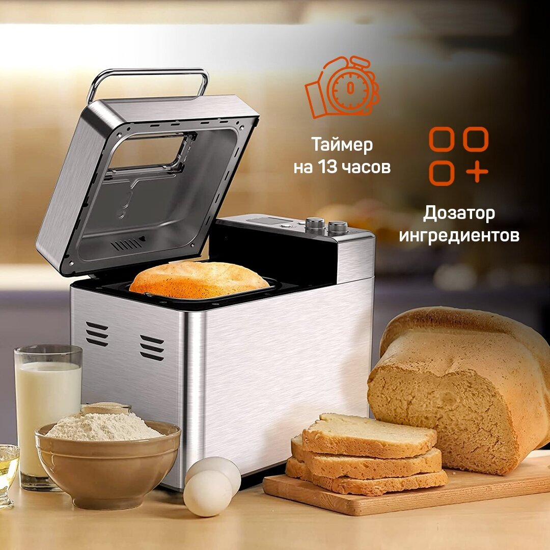 Многофункциональная хлебопечка OBERHOF BROTER F4 / 15 программ приготовления/Мощность 600 ВТ/Таймер/Нержавеющая сталь/