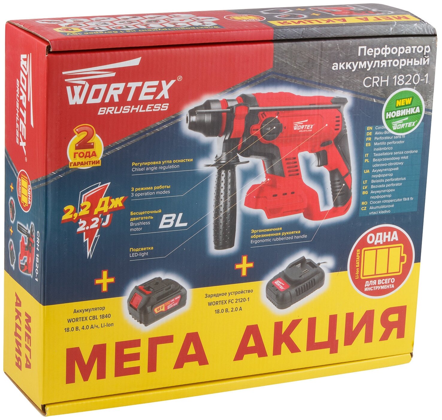 10 цен на Аккумуляторный перфоратор WORTEX CRH 1820-1; 2,2 Дж
