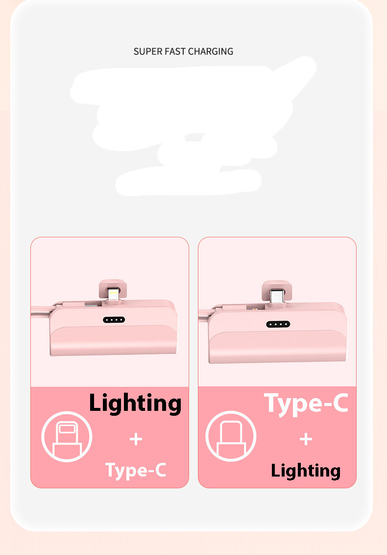 Внешний аккумулятор 2в1 5000 mAh основной Type-C и шнур lighting , Powerbank MINI (Розовый) информация: