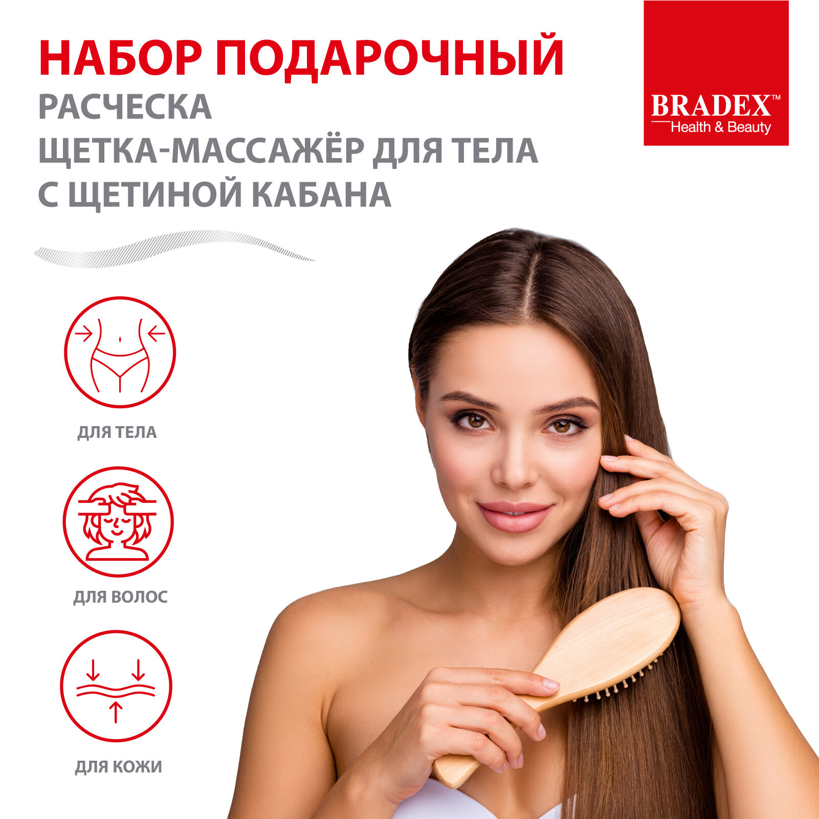 Подарочный набор 2 в 1 BRADEX, щетка для сухого массажа тела с щетиной кабана, деревянная расческа для волос массажная 990 ₽