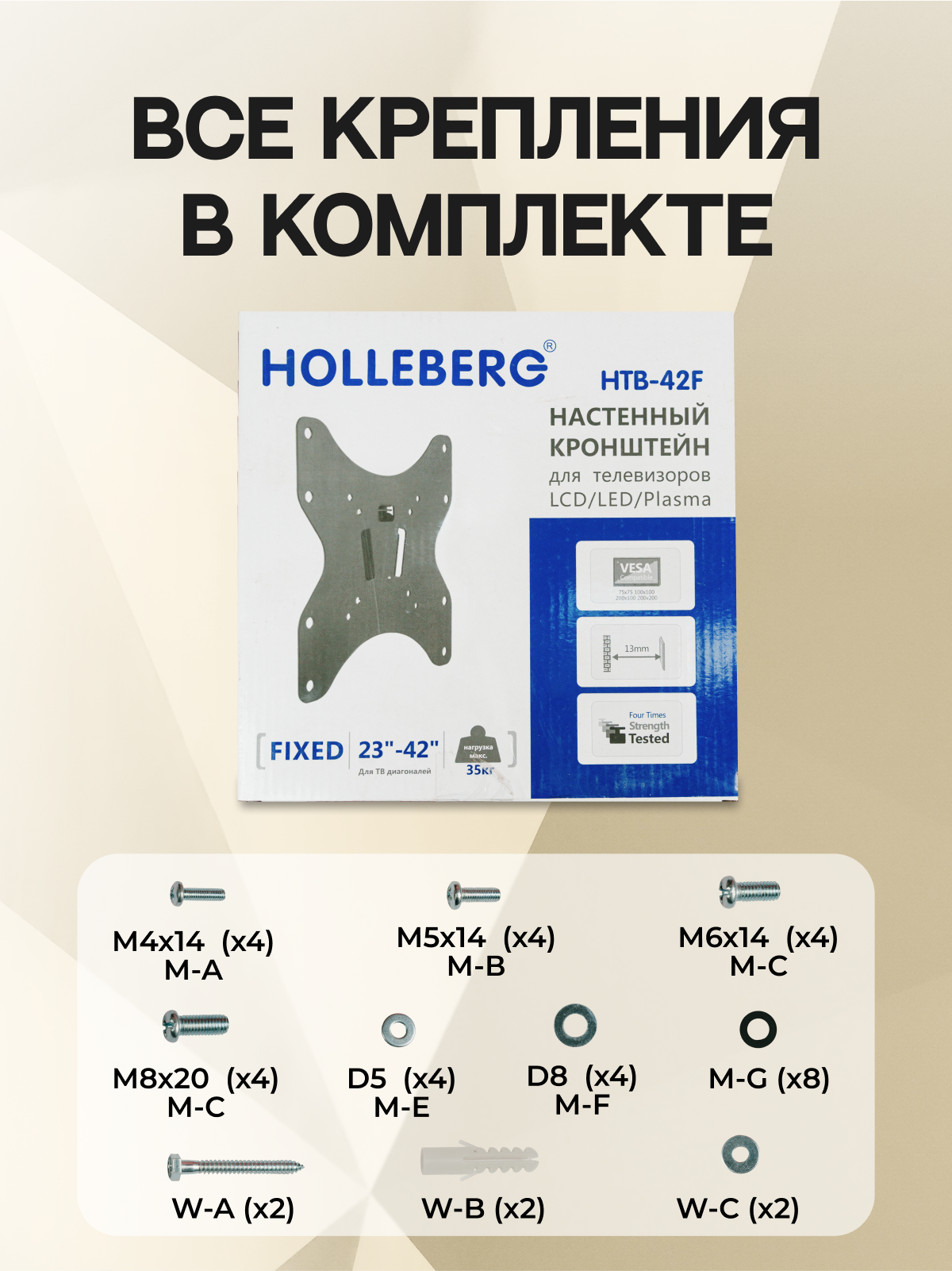 Кронштейн на стену фиксированный 23"-42" HOLLEBERG HTB-42F информация: