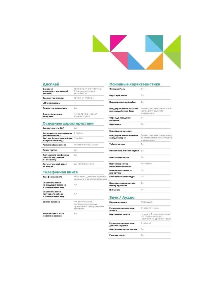 | Количество трубок, подключаемых к базе | 5 |