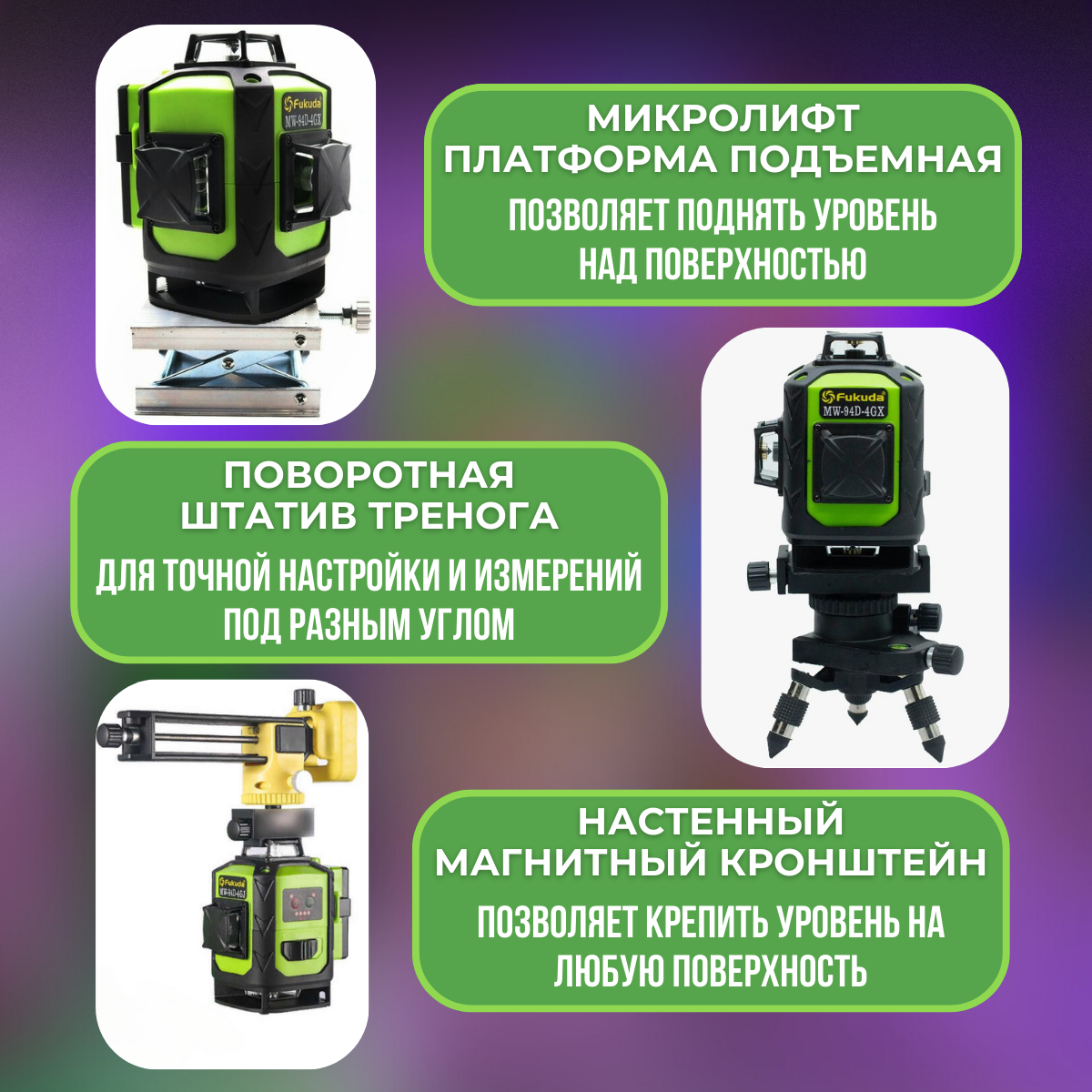 Лазерный уровень 4D MW-94D-4GX 16 линий FUKUDA в пластиковом кейсе. информация: