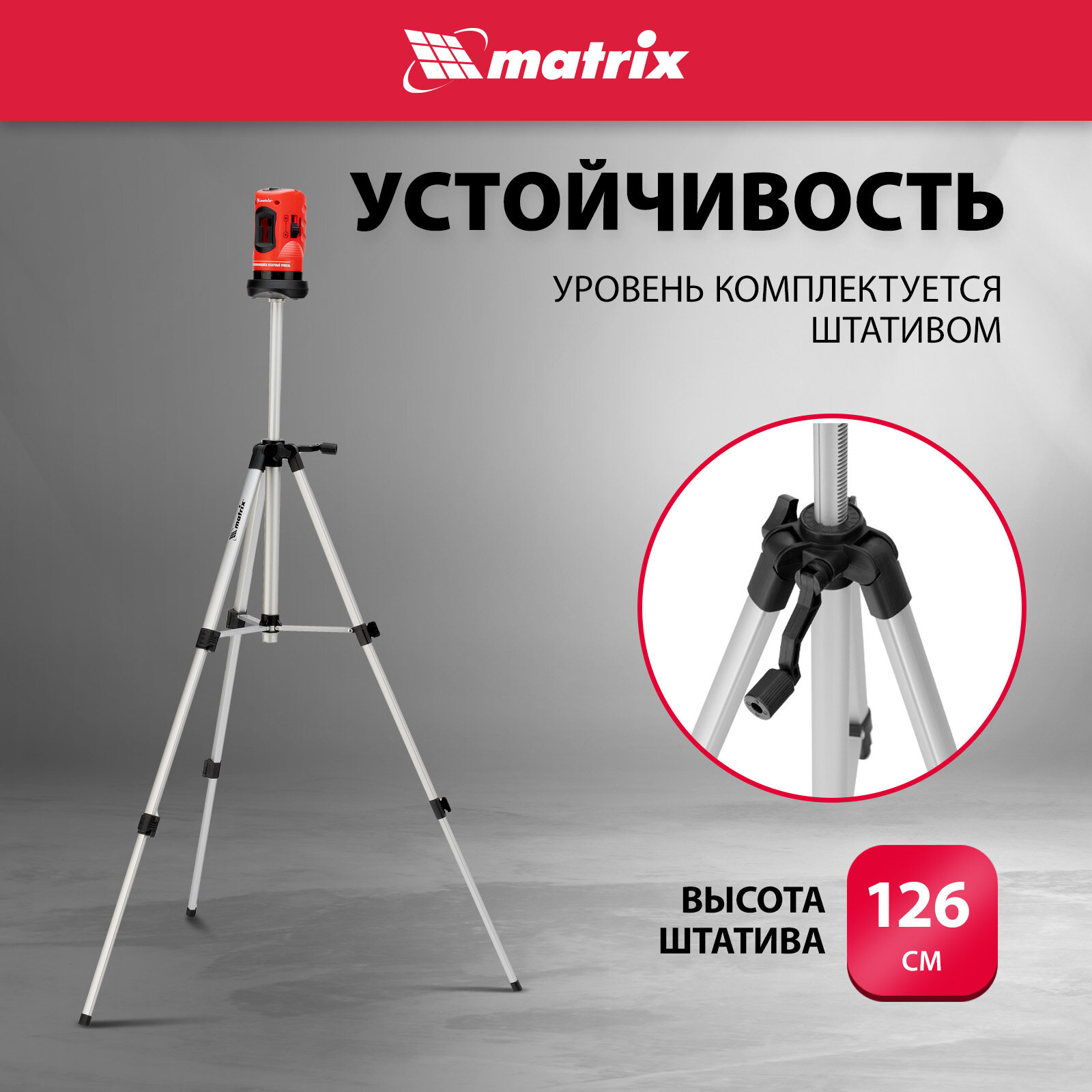 10 цен на Уровень лазерный Matrix 100 мм, штатив 1260 мм, самовыравнивающийся 35023