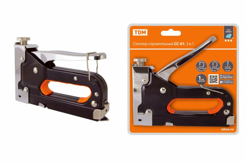 Степлер строительный TDM Алмаз СС-01, 3 в 1, скобы тип 140: 4-14мм, тип 28: 10-12мм, тип 300: 12-14мм
