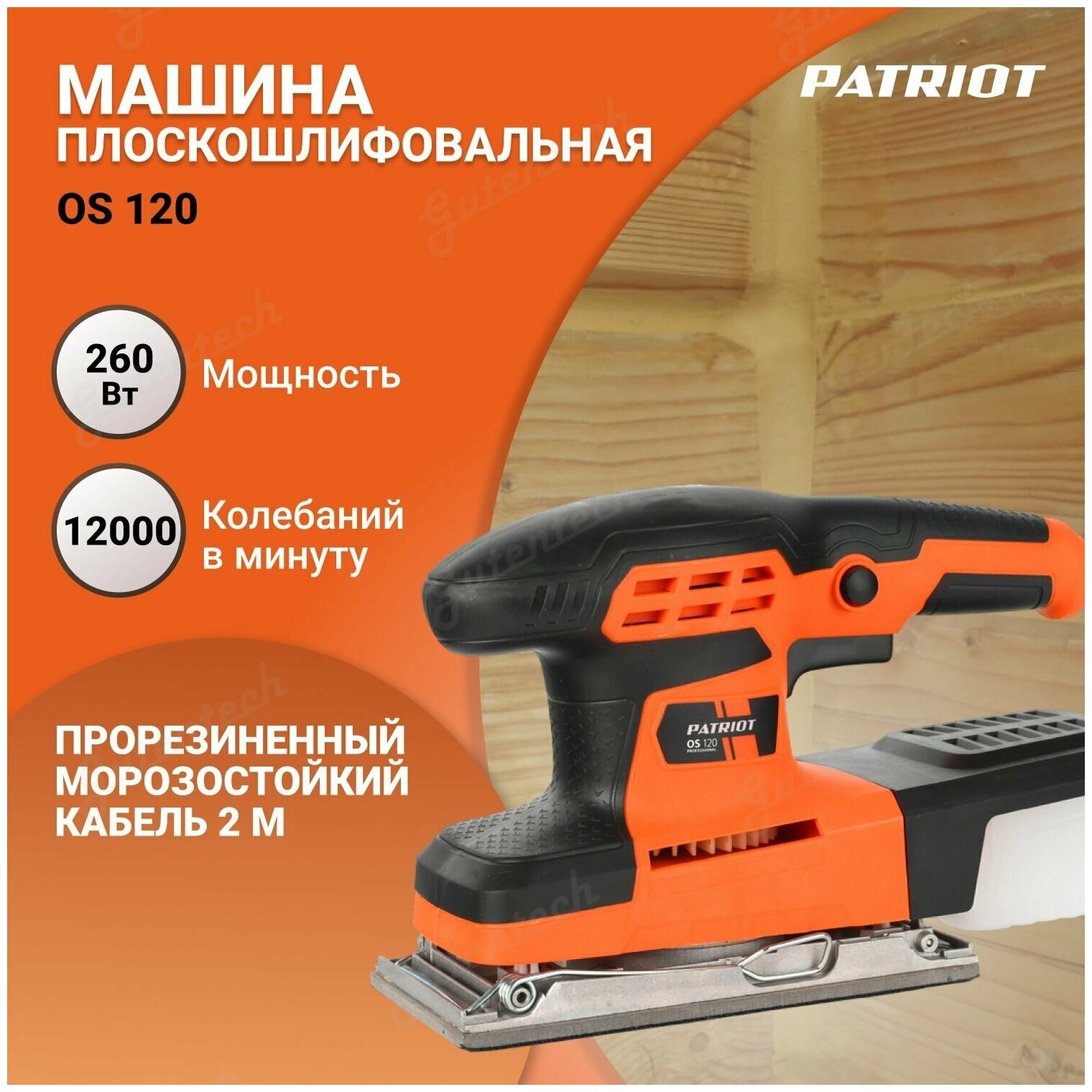 Машина плоскошлифовальная электрическая (ПШМ) PATRIOT OS 120, 260 Вт, частота колебаний 12000 кол/мин, система пылеудаления