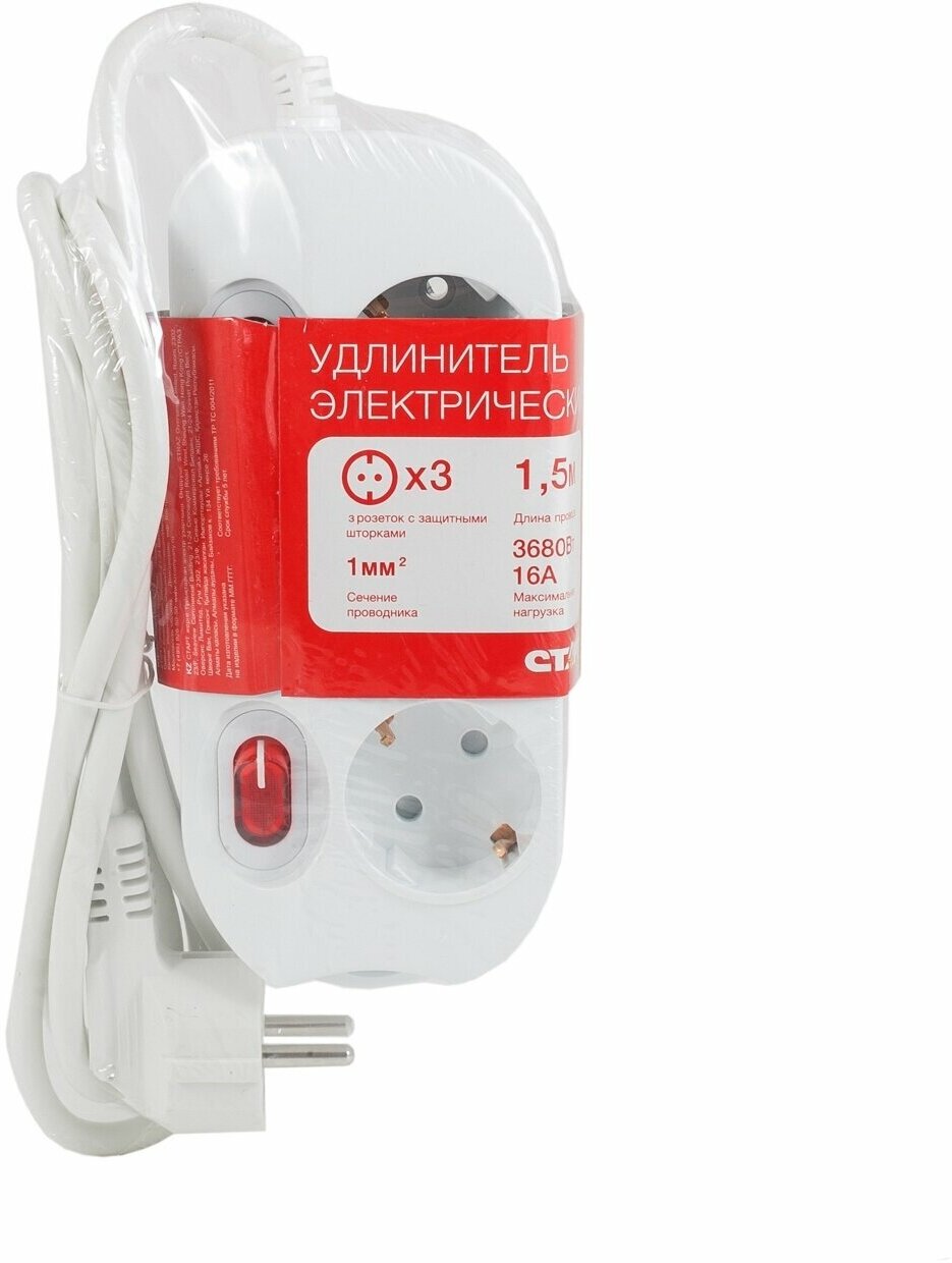 Удлинитель старт (С/У S 1-ZDIV) 3 розетки/1,5м/3680Вт/16А